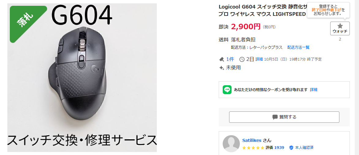 ヤフオクでマウス修理を依頼した。