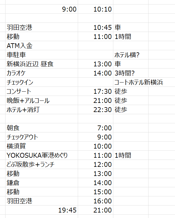 6時起床。7時朝食。9時チェックアウト。 横須賀を目指す。 1時間